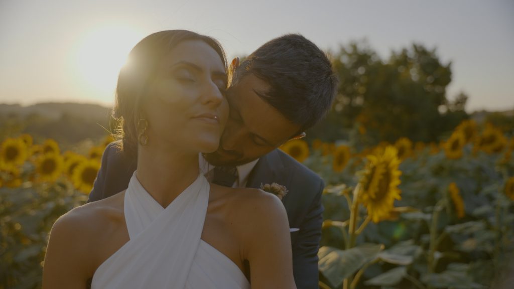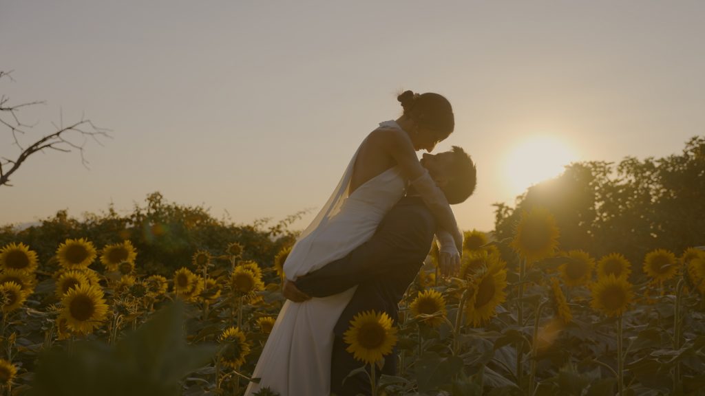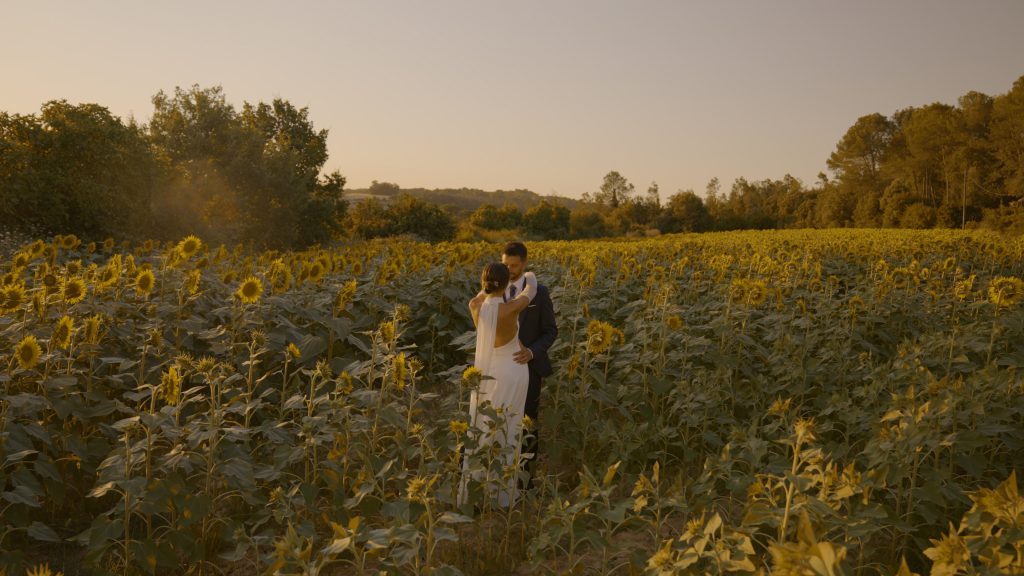 La Berta i en Marc van celebrar el seu casament en una masia envoltada de camps de gira-sols, un lloc que respirava natura i llibertat — com ells.